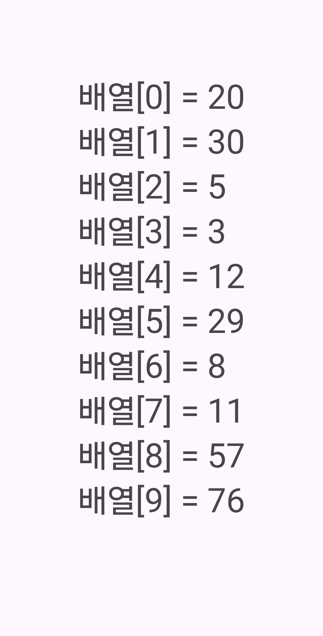 sArrNo += "배열[" + 2 + "] = " + nArrNo[2] + "\n";