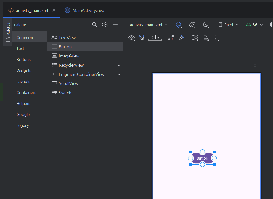 이제 버튼을 하나 만들고 그 버튼을 누르면 앱을 종료시켜보도록 하겠습니다.