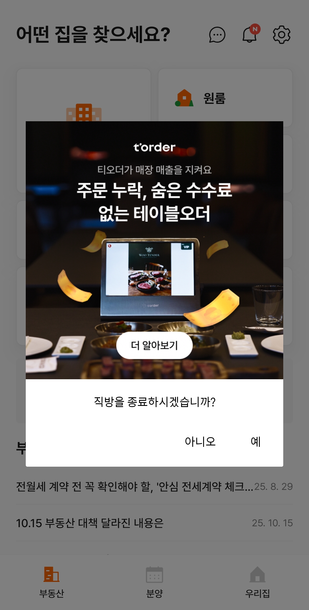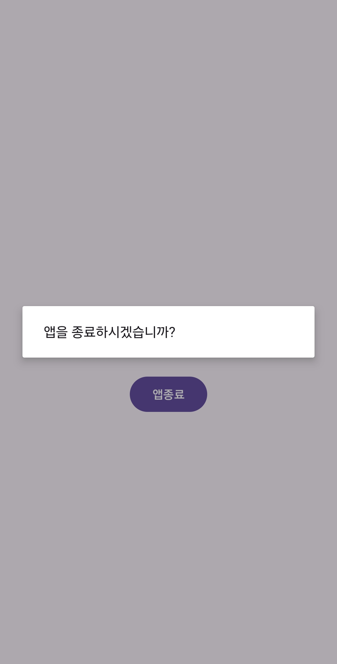 "앱을 종료하시겠습니까?"라는 다이얼로그 창이 잘 보이네요..^^