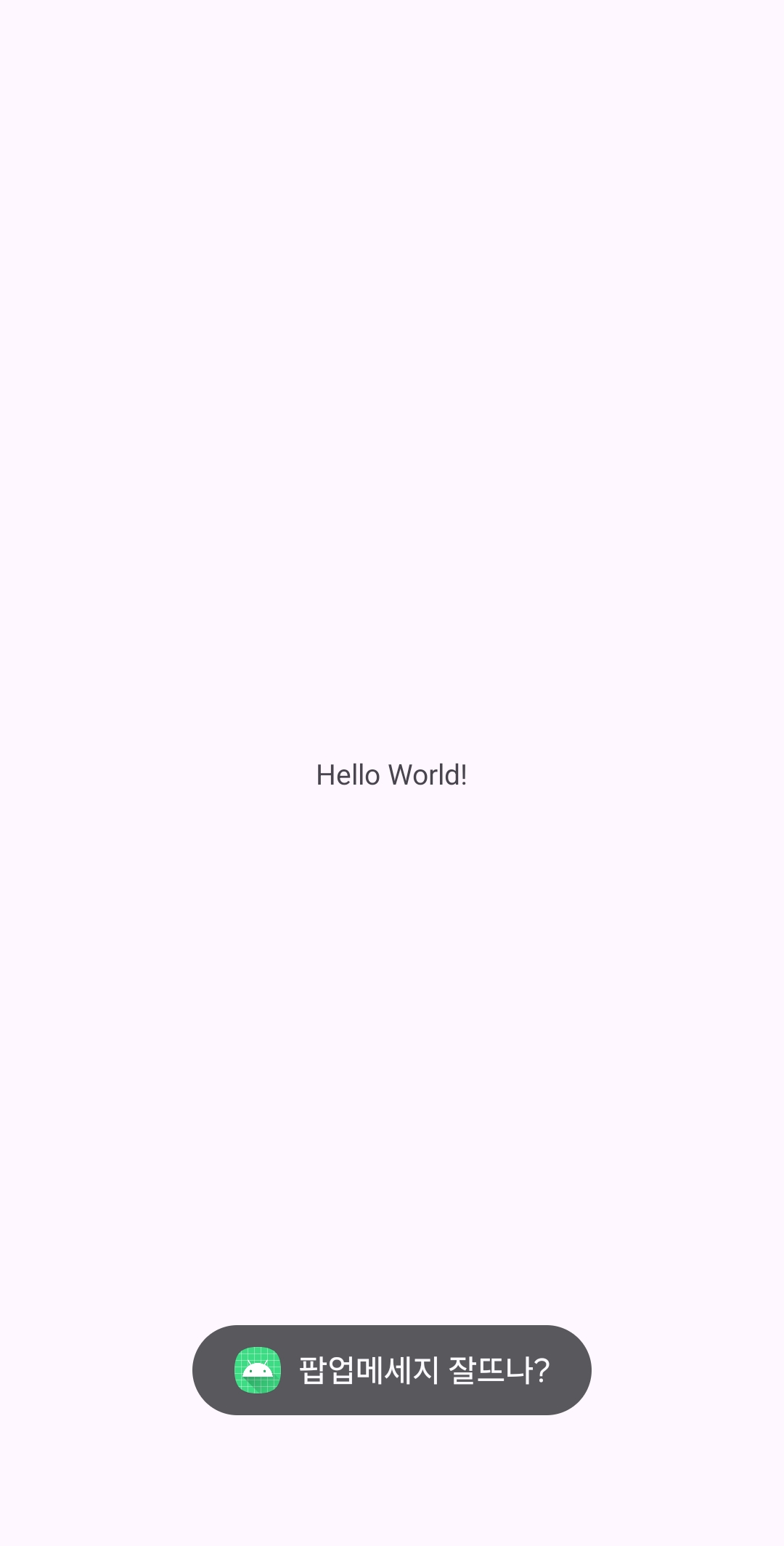 앱이 시작되자마자 Toast로 팝업메세지를 하나 띄워보겠습니다.