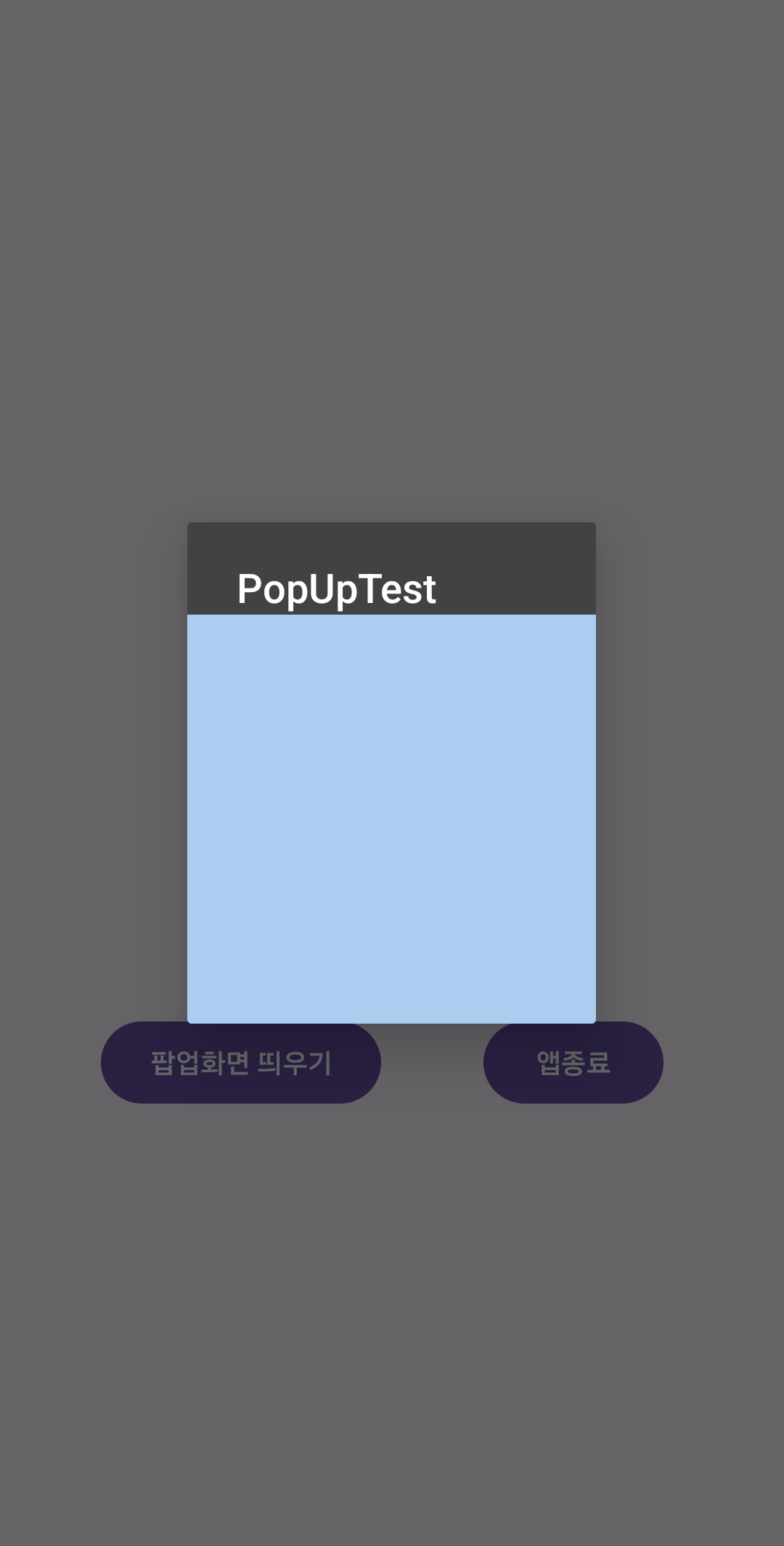 팝업화면에 "PopUpTest"라는 글씨가 써진 타이틀바가 보입니다.
