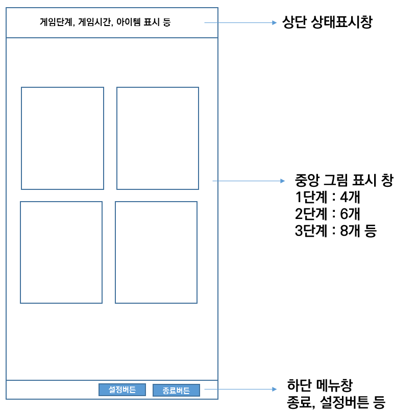 가운데는 그림 표시창으로 단계별로 짝을 맞출 그림을 표시하고