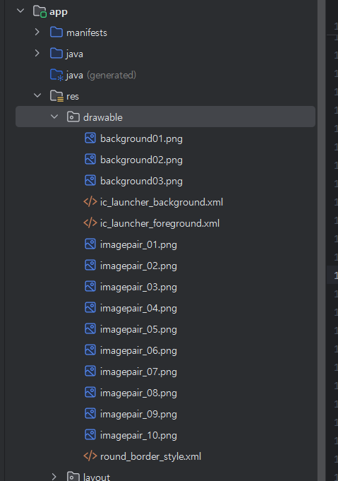 이번시간에는 ImageView 배경 디자인을 좀 해보고, 이미지 위치를 랜덤으로 배치하는 부분 해보도록 하겠습니다.