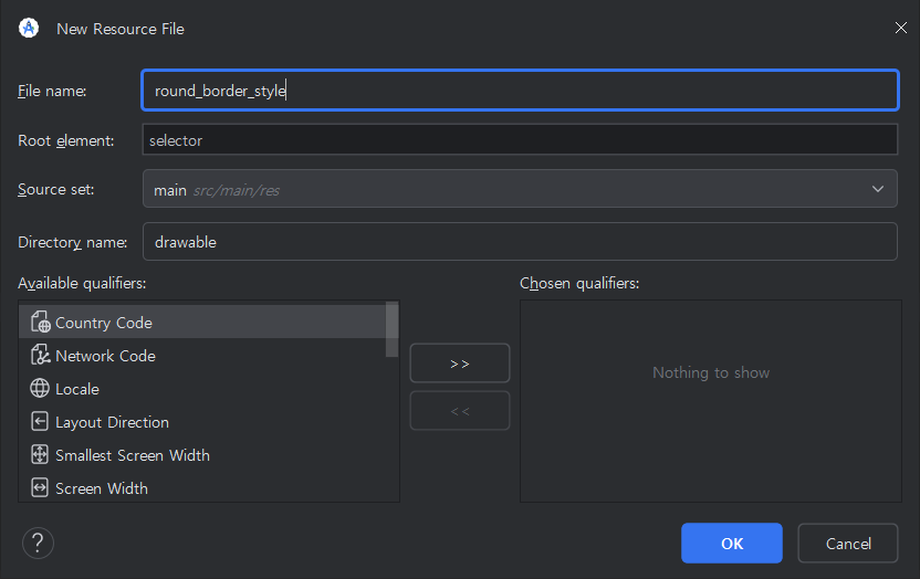 파일명을 round_border_style이라고 한뒤에 OK!!