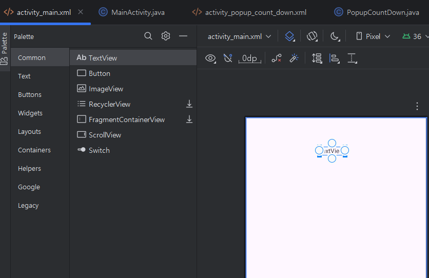 카운트 다운이 잘 표시되는지 확인하기 위해서 TextView를 하나추가해보겠습니다.